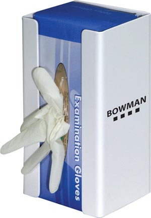 BOWMAN CLEAR PETG PLASTIC AND SINTRA (VARIOUS COLORS) GLOVE DISPENSERS